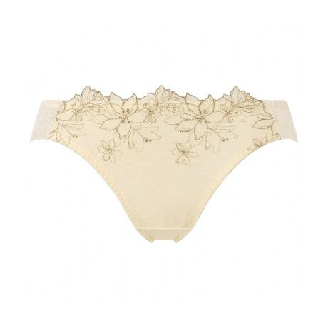 フロントには、やさしい線で描かれた上品なフラワー刺繍レースをあしらい、脚口には繊細な編みレースを施した、華やかでエレガントなデザインです。