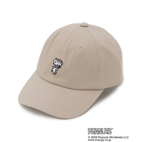シンプルキャップにちょこんとスヌーピーで大人も子供も楽しめるデザインです。