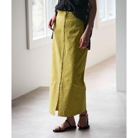 フロントジップのデザインがアクセントになったタイトロングスカート。