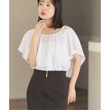 キャミソールとしての着用から、フリルを前に流せば半袖ブラウスとしても着られて印象をガラッと変えて楽しめます。