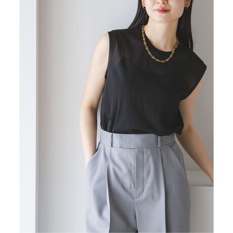 NOBLEの定番人気のシアースキニー素材を用いたノースリーブトップス。