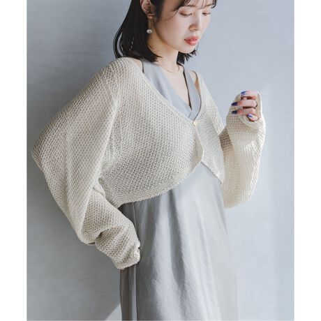 ぺーパーヤーンを使用したシャリ感のある独特な風合いに、表面感のある編地が清涼感漂うニットカーディガン。