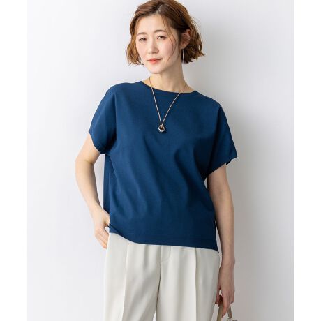 袖付けの切り替えをなくすことで、肩周りに優しくなじみ、ストレスフリーな動きやすさを実現したプルオーバーです。Tシャツのような感覚で気軽に着られますが、ニットならではの上品な素材感により、カジュアルになりすぎず大人っぽい印象を与えます。やや長めの着丈で、パンツにもスカートにも合わせやすく、裾はアウトでもインでもすっきりと決まります。程よいゆとりがありながらも、ジャケットのインナーとして着用してももたつかず、通勤スタイルにも最適です。カラーは、着回しやすいホワイト(#001)、ブラック(#005)、ネイビー(#075)などのベーシックカラーに加え、柔らかなピンク(#012)やスカイブルー(#072)、ニュアンス感のあるダークブラウン(#035)、新色のヘルシーな印象のライトオレンジ(#022)、こなれ感を演出するキャメル(#034)、落ち着いた色味で合わせやすいダルブルー(#074)、さらにコーディネートのポイントになるオフ×ベージュ(#101)、ダークモカ×ネイビー(#130)、ネイビー×キャロット(#175)などのボーダー柄を含む、全13色の豊富なバリエーションで展開しています。