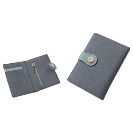【本革バイカラーの手帳型ミニ財布】Blanc Pommeの牛革手帳型は薄型なのにカードも小銭もしっかり収納。【極薄シルエット】スリムな約2cmの薄型設計でミニバッグにもすっきり収まる◎【くすみカラーに差し色の遊び心】トレンドのくすみカラーにバイカラーのベルトが映えてさりげなく個性を演出する洗練デザイン♪【隠しマチで広がるコイン収納】サイドに隠しマチがあるファスナー式小銭入れは程よく広がり小銭の出し入れがしやすい!【カード9枚収まる充実ポケット】カードポケット5か所にフリーポケット4か所を備えた薄型なのに頼れる大容量〇【牛本革のシワ感が放つ上質感】外側に使用した牛本革は使い込むほど手に馴染み味わい深い風合いへと育つ。【手のひらに収まる軽やかさ】手のひらサイズで持ち歩きもスマートなうえ嬉しい軽さ◎