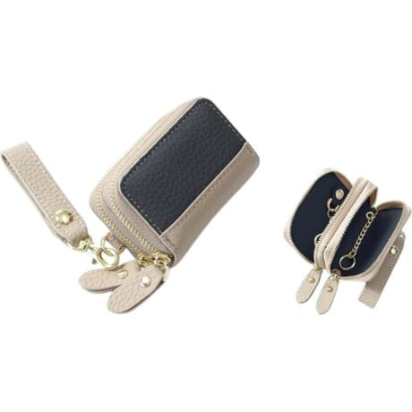 【本革バイカラーのWジップキーケース】Blanc Pommeの牛革キーケースはWジップでスマートキーも鍵も整理。【Wジップで鍵を分けて収納】ダブルファスナーでスマートキーと鍵を別々に収納できる◎【外せるチェーン】スナップボタン式のキーチェーンだから玄関の鍵だけを外して使えるクイック仕様♪【くすみカラーの大人バイカラー】トレンドのくすみカラーに差し色を効かせたバイカラーが手元をおしゃれに見せる。【バッグに付けてチャーム使い】360度回転する取り外し可能なストラップ付きでバッグの持ち手に付ければかわいいアクセント!【牛本革の上質感】外側の牛本革は使うほどに手に馴染み味わい深く育つ素材〇【内側は傷に強い合皮レザー】鍵が当たる内側には傷に強いフェイクレザーを採用し音も鳴りにくい静かな構造◎【手のひらサイズ】約6×8.5cmの手のひらに収まるコンパクトサイズ。