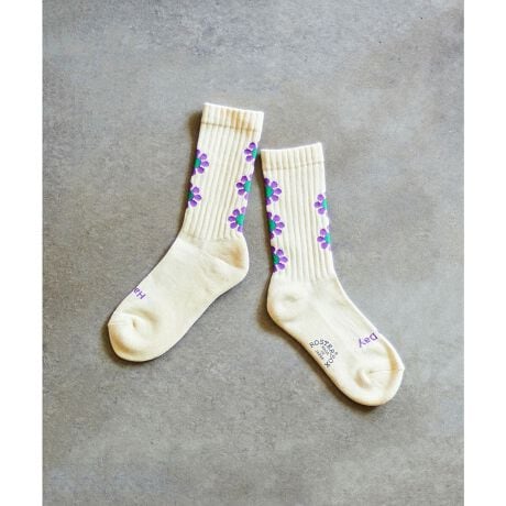 フラワー柄で気分が上がる「PEACE」ソックス