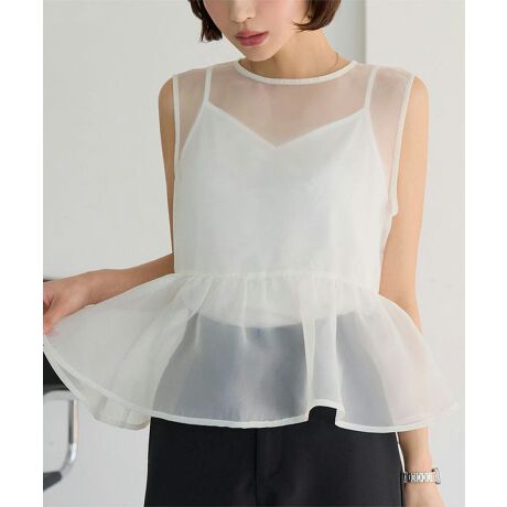 [ 2点セット ] オーガンジーペプラムブラウス&キャミソール [C7791]