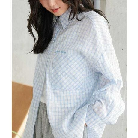 刺繍ロゴチェック柄ビッグシャツ [C7847]