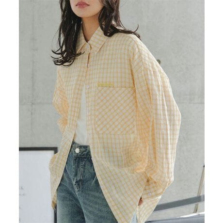 刺繍ロゴチェック柄ビッグシャツ [C7847]
