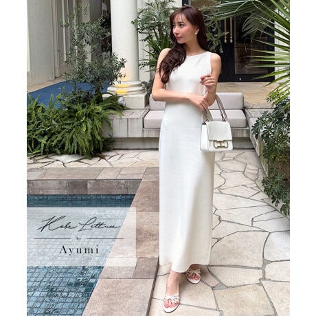 落ち感のあるストレートシルエットが女性らしいニットワンピース。