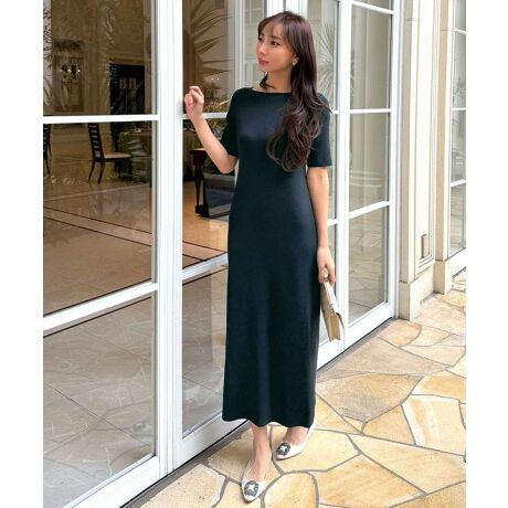 落ち感のあるストレートシルエットが女性らしいニットワンピース。