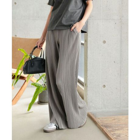 すっきりとしたワイドパンツにプリーツの縦ラインが美脚見え叶うシルエット。
