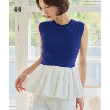 ニットやスウェットのインナーにレイヤードさせても可愛く、カジュアルにもキレイめにも着回せるペプラムニットです。