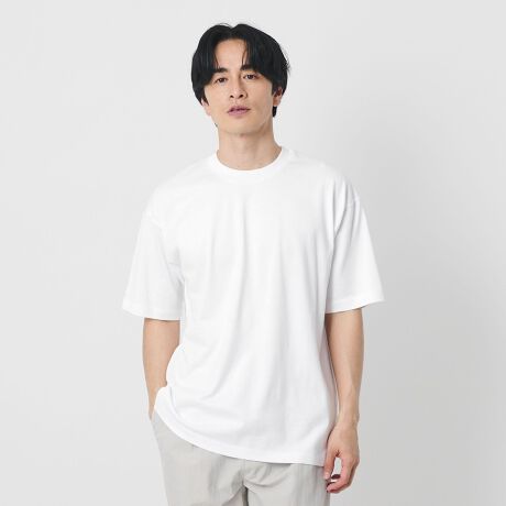 ほどよく存在感のある太めのネックラインが、モックネックのような端正な表情を演出するTシャツです。