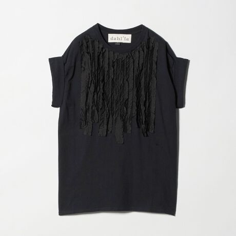 シンプルなTシャツに、別布でフロントを装飾したクラフト感あふれるショートスリーブカットソー。