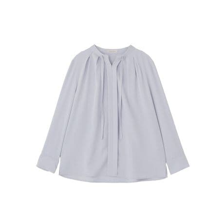 さりげないリボンで華やぐ、大人のきれいめブラウスシンプルな中に上品なアクセントを添えるリボンデザインが印象的なブラウスです。落ち着いた雰囲気のデザインに、フロントのリボンがほどよい華やかさをプラスし、大人のきれいめスタイルを演出します。フロントに施されたタックがやわらかなドレープ感を生み出し、自然な立体感で上品なシルエットを作ります。すっきりとしたネックラインは顔まわりをきれいに見せ、アクセサリーとの相性も良いのが魅力です。フロントホック仕様で着脱しやすく、毎日のコーディネートにも取り入れやすい一枚です。裾のサイドスリットが動きやすさを高め、ボトムインやアウトのどちらでもバランスよく着こなせます。オフィススタイルから休日のお出かけまで幅広く活躍し、上品カジュアルな装いを楽しめる万能アイテムです。※ホワイト系は、やや透け感あり。透け感[ややあり]