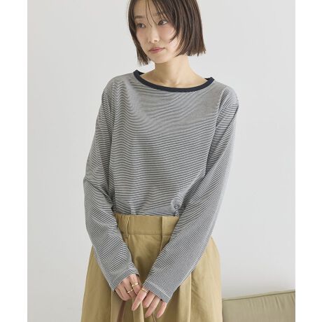 やわらかな透け感で軽やかに着こなす大人ボーダーほどよい透け感が軽やかな印象を与えてくれる、シアー素材のボーダープルオーバーです。シンプルなボーダーデザインにやさしいカラーを組み合わせることで、カジュアルになりすぎず大人らしい雰囲気に仕上げています。コットン100%素材を使用しているため、やわらかな肌触りで着心地がよく、長時間の着用でも快適に過ごせます。程よくゆとりのあるシルエットで体のラインを拾いにくく、リラックス感のある着こなしが楽しめます。デニムやワイドパンツと合わせたカジュアルスタイルはもちろん、スカートと合わせてやさしい印象のコーディネートにもおすすめです。季節の変わり目にも取り入れやすく、デイリーコーデに活躍する着回し力の高いアイテムです。透け感[ややあり]