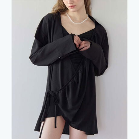 ・スイムウェアの上からはもちろん、タンクトップ×ショートパンツに羽織ってリゾート感を出したり、デニム合わせでカジュアルにまとめたりと着回し力抜群です。