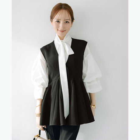腰まわりをさりげなくカバーしながらスタイルアップを叶えるのもポイント。