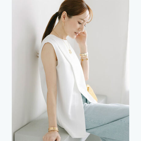 フロントに入れたスリットが印象的なブラウス。
