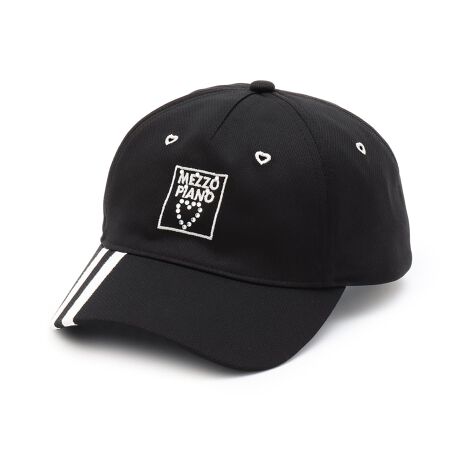 ラインストーンがついたロゴやリボンでスポーティな中にメゾピアノらしさをプラスしました。