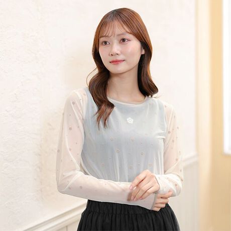 シアー感が上品な肌見せを叶えるプルオーバー。◆ポイント・デイジーとドット柄の総柄フロッキープリント・長袖◆コーディネートTシャツやワンピースにレイヤードして、トレンドのスタイルを楽しんで。着まわしのきく一枚です。[型番:226-601904]