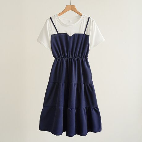 Tシャツとキャミワンピースを重ねたようなデザインが魅力のドッキングワンピース。やや透け感のある軽やかな素材が今季のトレンドにぴったりで、抜け感のあるスタイルが楽しめます。