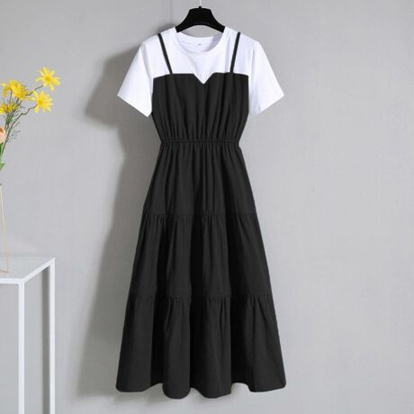 Tシャツとキャミワンピースを重ねたようなデザインが魅力のドッキングワンピース。やや透け感のある軽やかな素材が今季のトレンドにぴったりで、抜け感のあるスタイルが楽しめます。