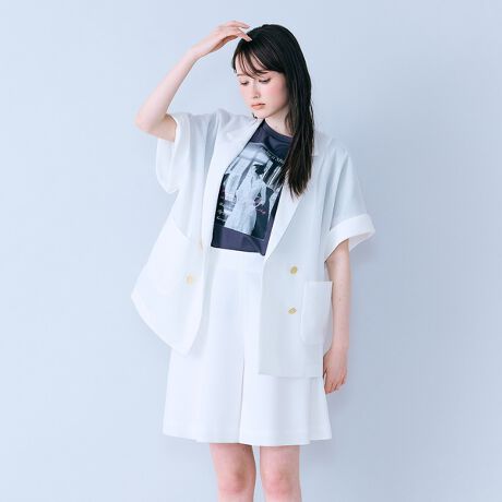 ・サラッと軽い気持ちできちんと感が出るハーフスリーブダブルジャケット。
