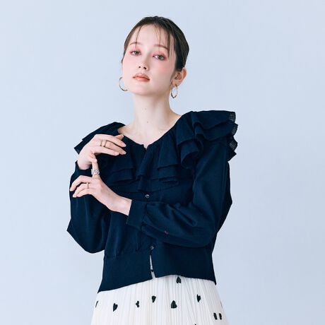 ミルフィーユラッフルカラーカーディガン