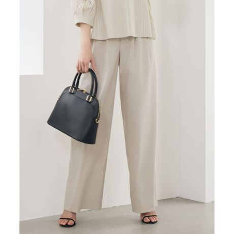 セットアップでも単品でも映える洗練ワイドパンツ■デザインシンプルで大人っぽい印象に仕上げたワイドストレートパンツです。腰まわりに程よくゆとりを持たせつつ、裾に向かってすとんと落ちる美しいシルエットが特徴です。ウエストまわりにはタブディテールを施し、ミニマルなデザインにさりげないアクセントをプラスしています。後ろウエスト部分はゴム仕様で、ストレッチ性のある素材ならではの快適なはき心地も魅力です。同素材のジレ(VRW7LM0401)やジャケット(JKW7LM0401)とのセットアップはもちろん、シンプルなトップスから華やかなブラウスまで幅広く合わせやすく、麻混素材ならではの表情がスタイリングを上品に引き立ててくれます。※オフ(002)のみ、裏地が付いています。■素材タテ糸にリネン、ヨコ糸にポリエステルとレーヨンの混紡したストレッチ糸を使用した素材です。リネンならではのドライでさらっとした風合いがありながらも、レーヨンのしなやかさと柔らかさを併せ持った大人っぽい表情感が魅力。程よくストレッチを効かせた着心地の良さと肌離れの良いタッチが夏に向けておすすめの素材感です。UVカット、接触冷感、吸水速乾の機能性の高さもポイントです。■同素材ジャケット(JKW7LM0401)ジレ(VRW7LM0408)