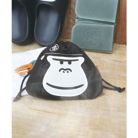 サウナ・温泉・銭湯シーンで使いやすい、洗える巾着。ブランドキャラクターでもある、ゴリラの“まもるさん” のフェイスデザインが目を惹くアイテム。