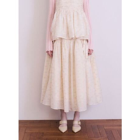 繊細なギャザーとタックでボリュームを出し、ポケット口に更にギャザーを寄せることで、立体感のあるフレアースカート。