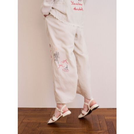 ヨーロピアンヴィンテージのムードを感じさせる、6種類のオリジナル刺繍を組み合わせた、イージーパンツ。