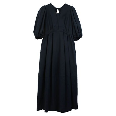 ボリューム感のある袖と、コンパクトな身頃がメリハリのあるシルエットに、後ろの大きなリボンが特徴のワンピース。