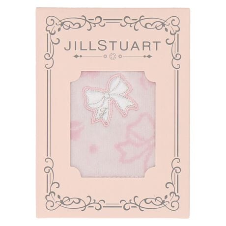リボンの刺繍が可愛らしいタオルハンカチは、ジルスチュアートのピンクのパッケージ入りでギフトにもおすすめです。