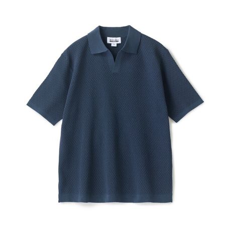 14Gの繊細なニットに、リンクス編みで表現したバンブー柄をあしらったニットポロ。