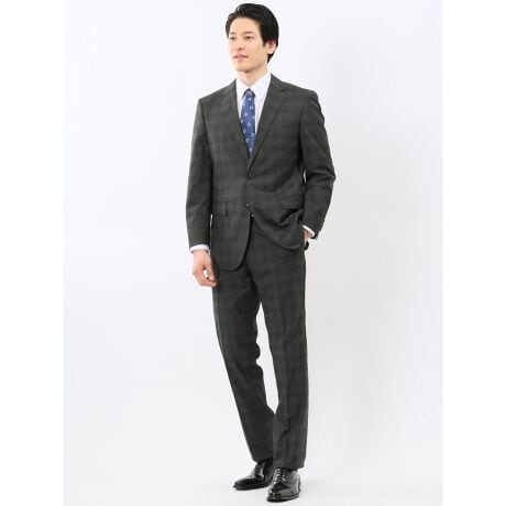 ストレッチウォッシャブル レギュラーフィット 2ボタン2ピーススーツ チェックグレー