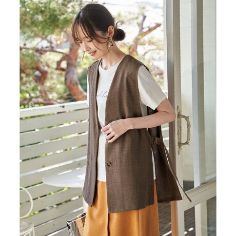 ノーカラーサイドベルトジレ