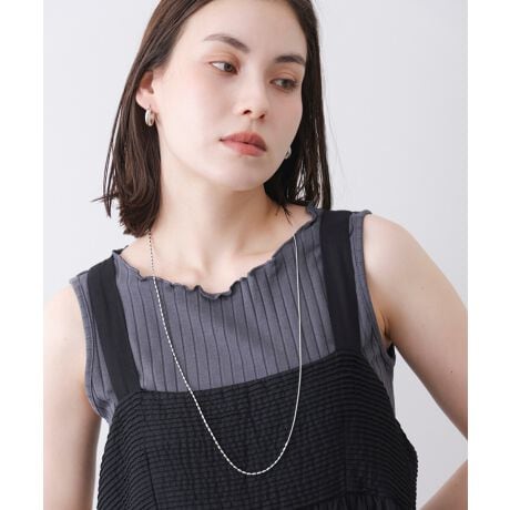 半分があずきチェーン、半分がシンプルなひも状チェーンになっているデザイン性のあるネックレス。
