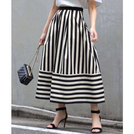 ストライプフレアロングスカート