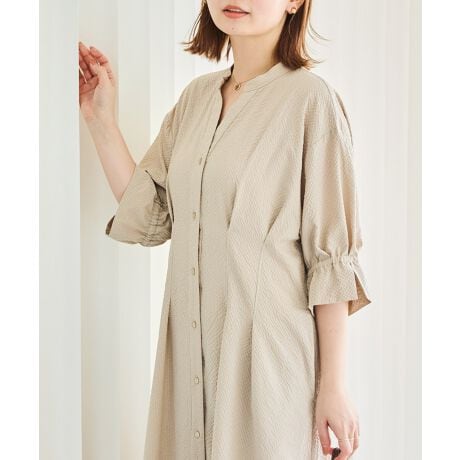 フロントはボタン仕様で、ワンピースとしてはもちろん、前を開けて羽織りとしても着用可能です。