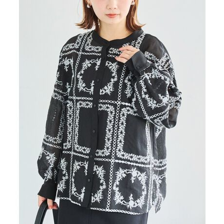 繊細なレース風刺繍をあしらったシアーブラウス。