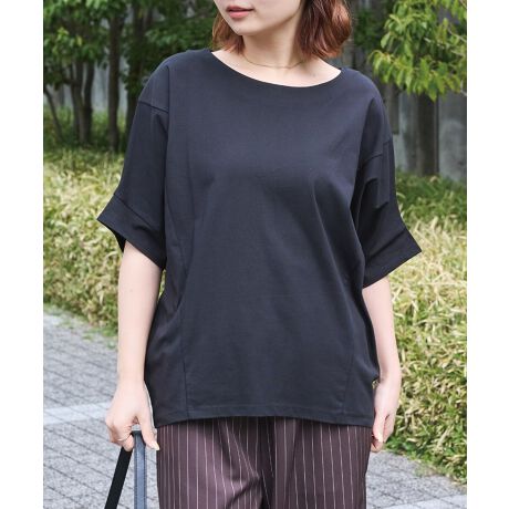 二の腕をしっかりカバーするドルマンスリーブ風のデザインで、体型カバーも叶う一枚です。
