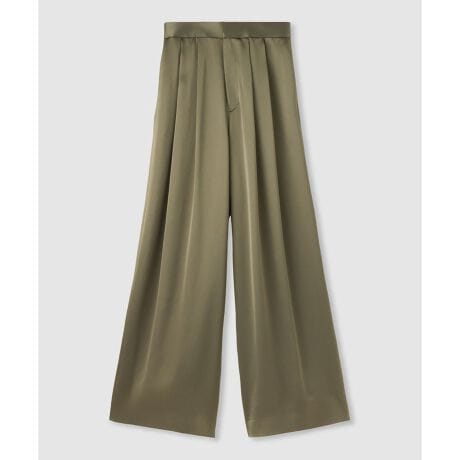 美しい光沢が魅力のサテンパンツ。