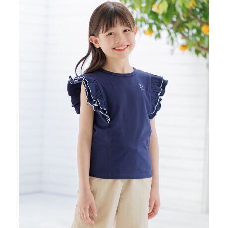 ■デザイン花びらを思わせるひらひらとしたフリルがポイントのカラーTシャツです。