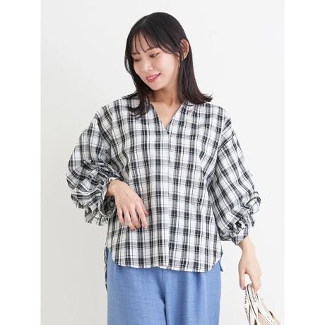 チェック柄タックスリーブスキッパーシャツ