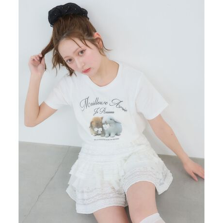 ふわふわした毛並みがカワイイアニマルモチーフプリントに、立体リボンをあしらったミニマルなTシャツ。