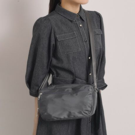 マットで柔らかな風合いの素材にすっきりとしたフォルムを合わせたショルダーバッグ。