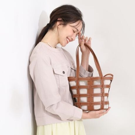 格子状のフレームが目を引く、軽やかな印象のレイヤードトートです。